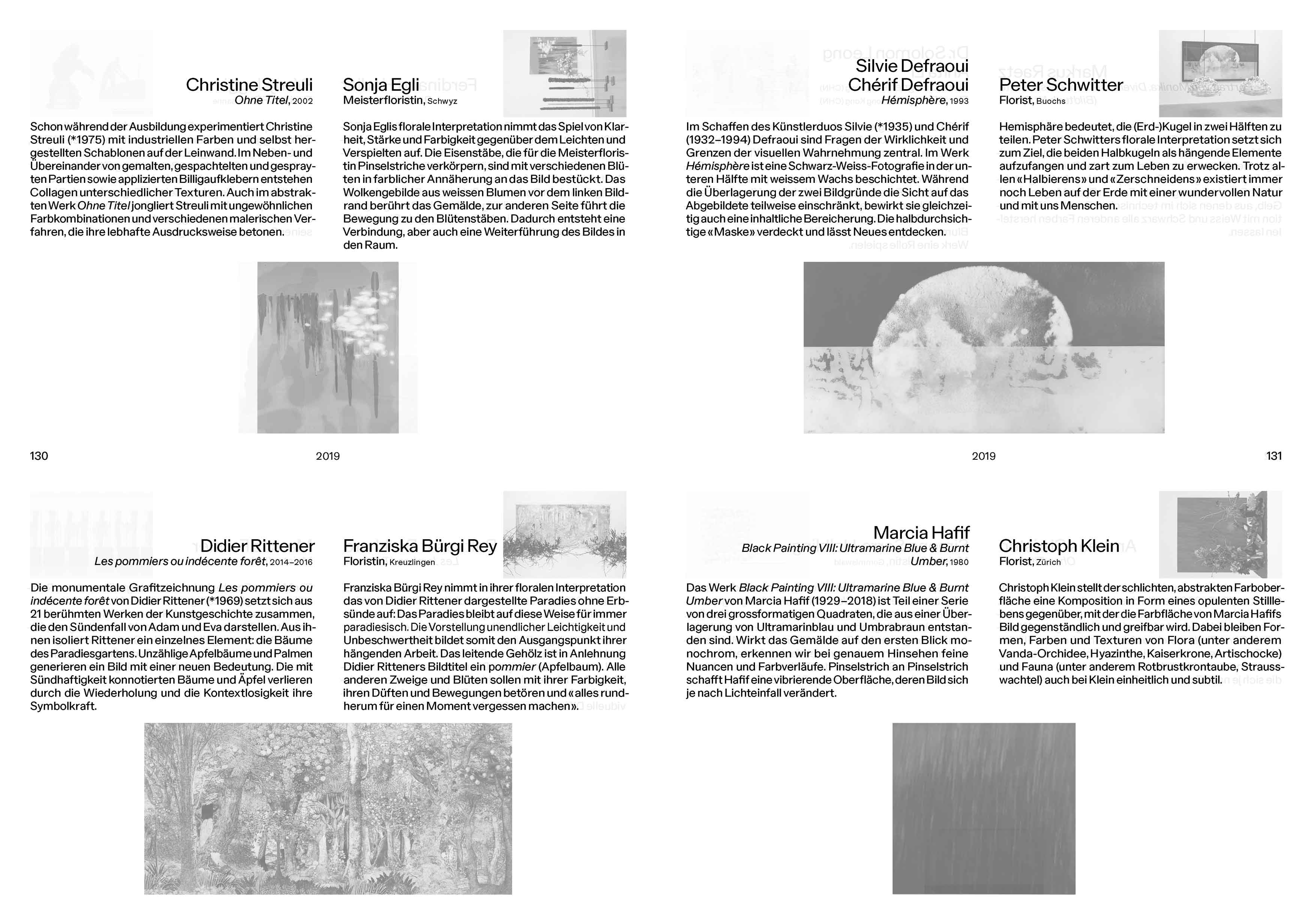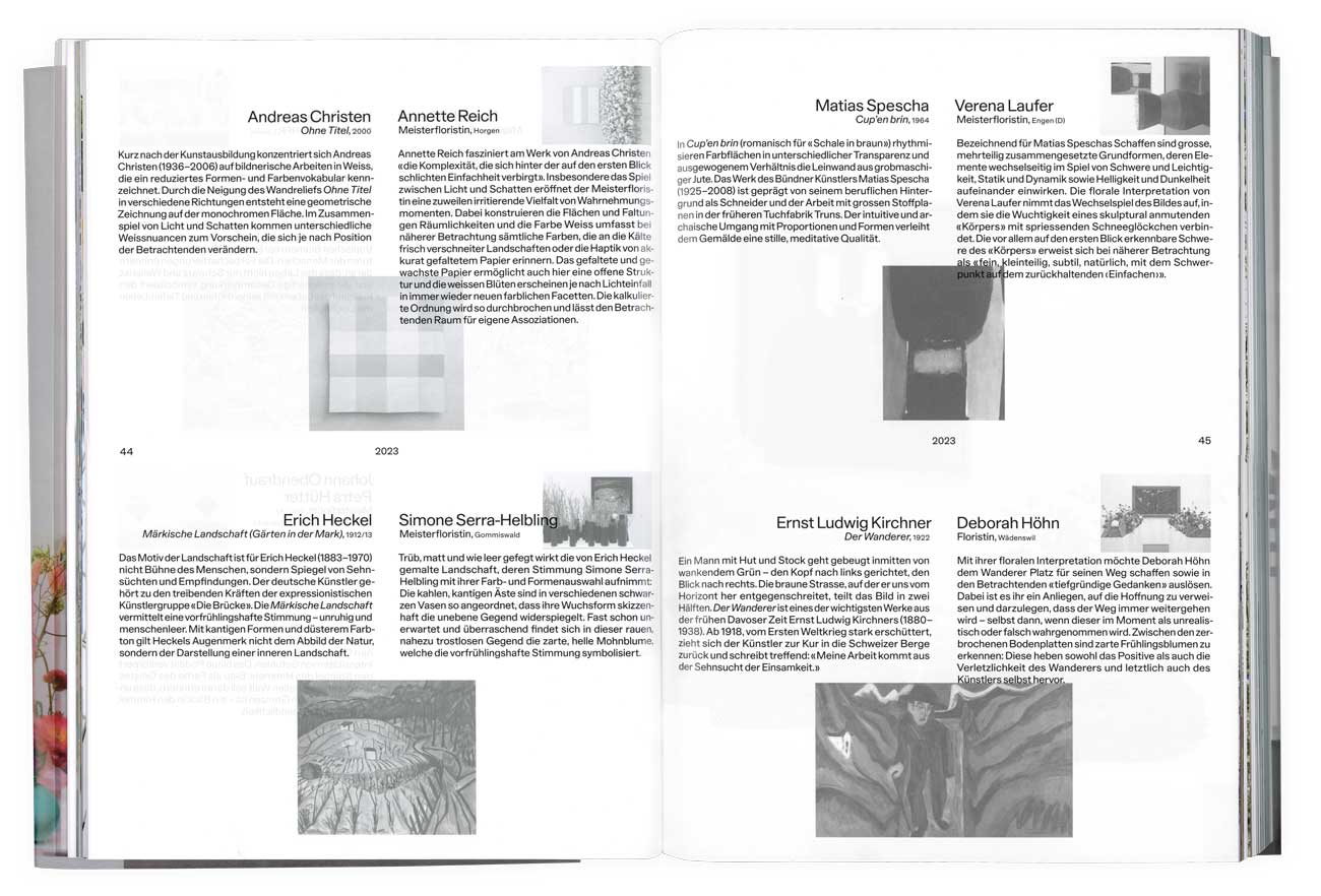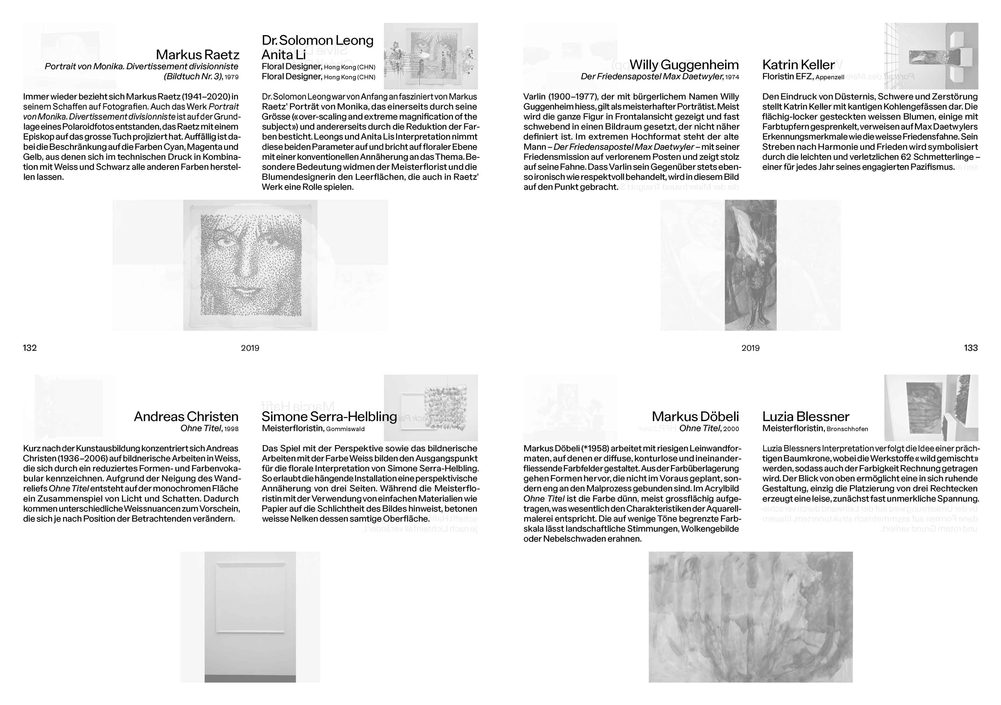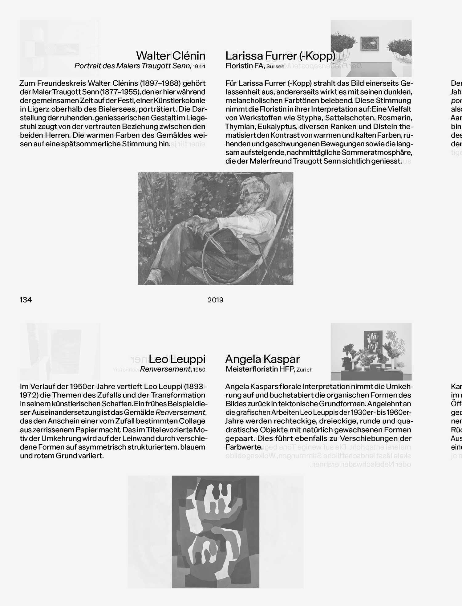 The concept of the 10th anniversary publication “Blumen für die Kunst”, dedicated to the eponymous exhibition series, is based on interdisciplinarity and a shift in perspective. The depiction of the floral interpretation relies on a clear, direct typographic language and a bold, image-focused layout. The publication documents the events, capturing their vibrancy and complexity on-site while bringing the various components together in a tactile experience.