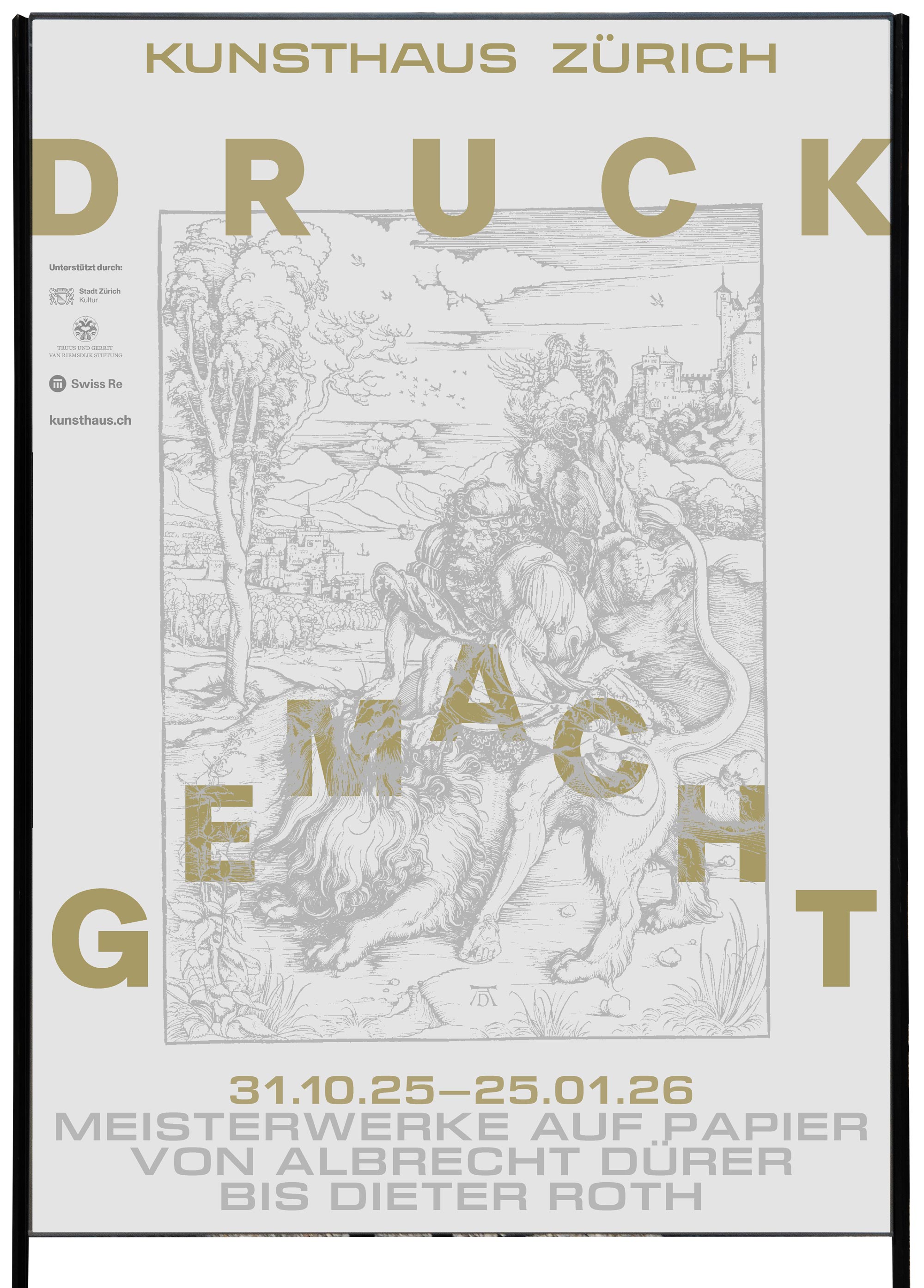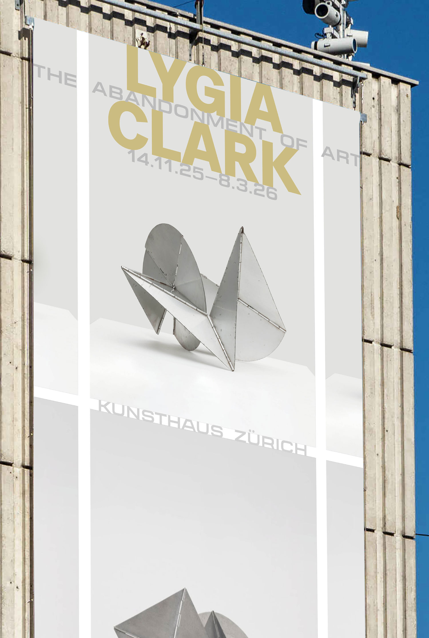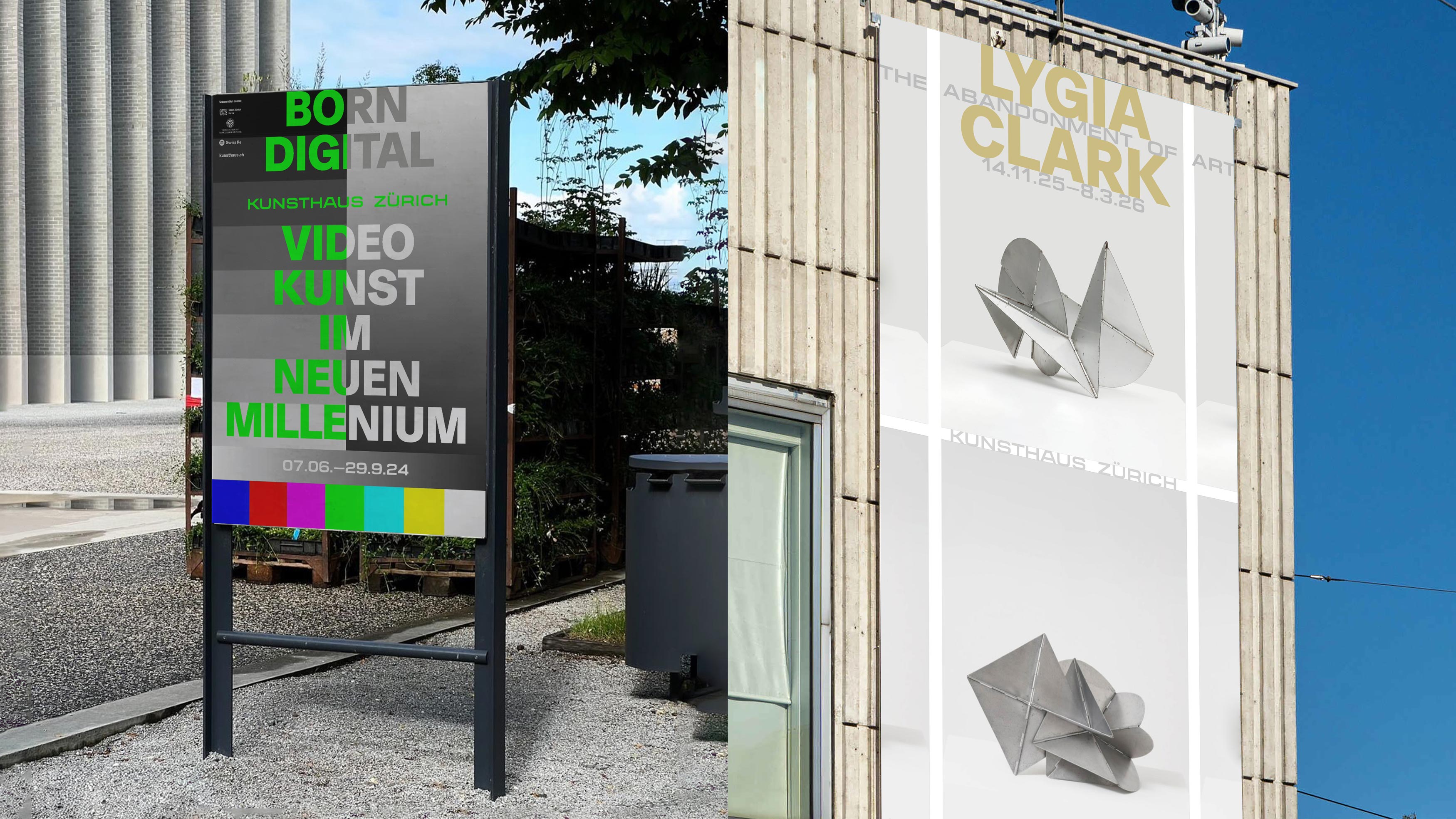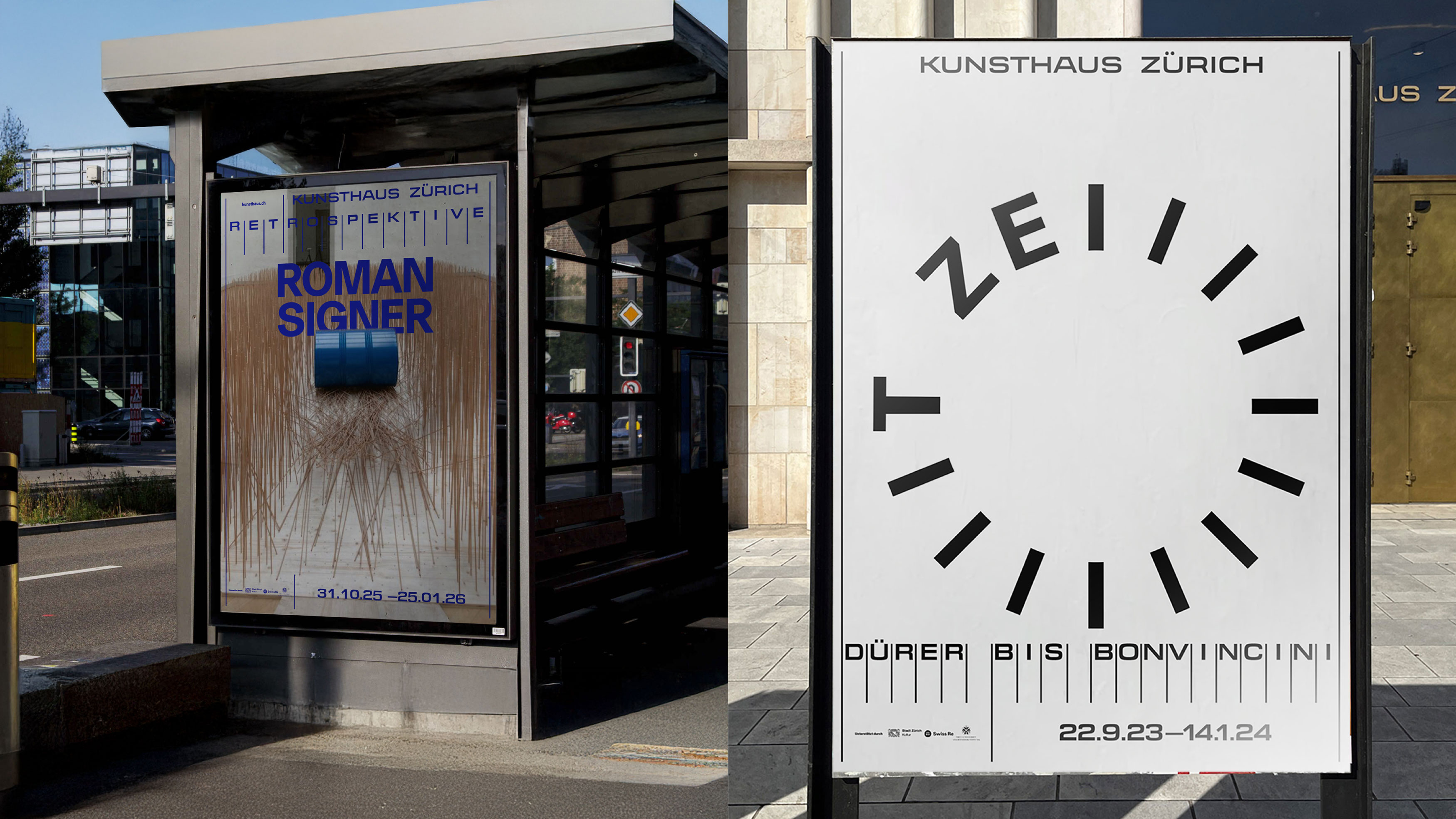 Kunsthaus Zürich’s three buildings share a monumental presence. The Chipperfield extension and the historic Pfister building are visually connected through their vertical façade elements. This inspired a line-based design that structures content and creates playful typographic spaces.