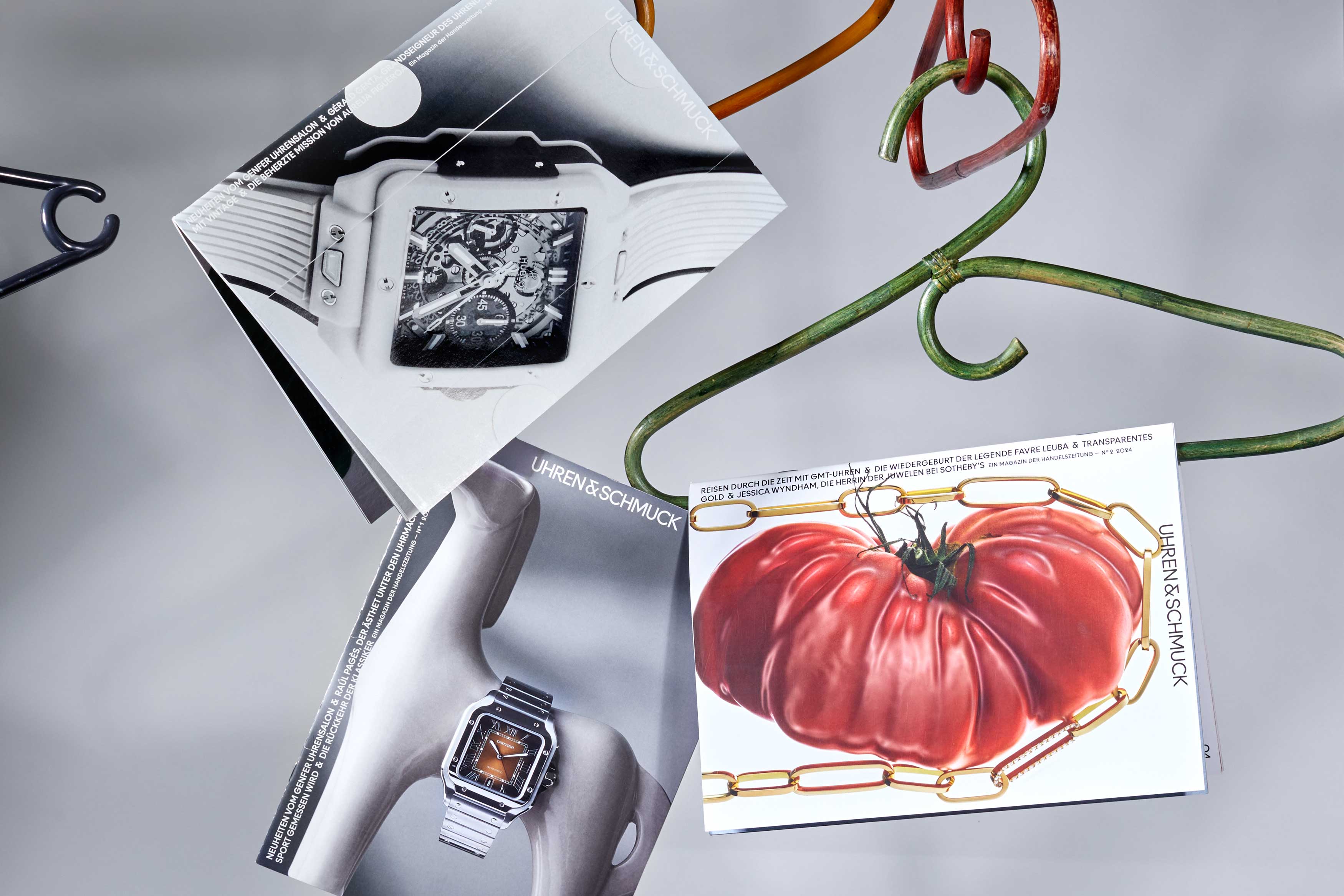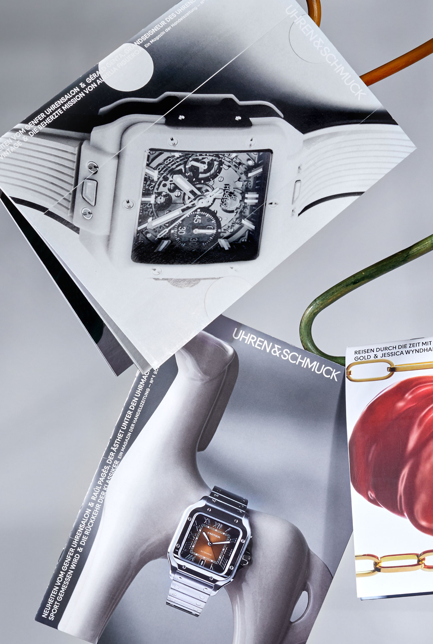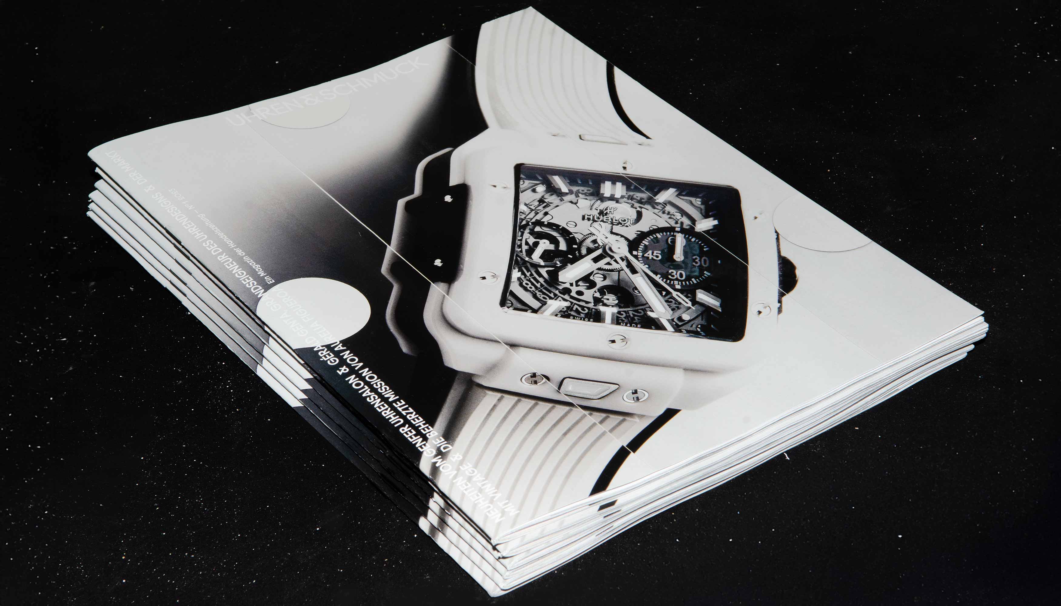 Art direction and editorial design for the semi-annual magazine “Uhren & Schmuck”. Development of a typographic and grid system together with a visual language to structure diverse editorial content. Ongoing design of each issue, including editorials and covers. Published as a supplement to “Handelszeitung”.